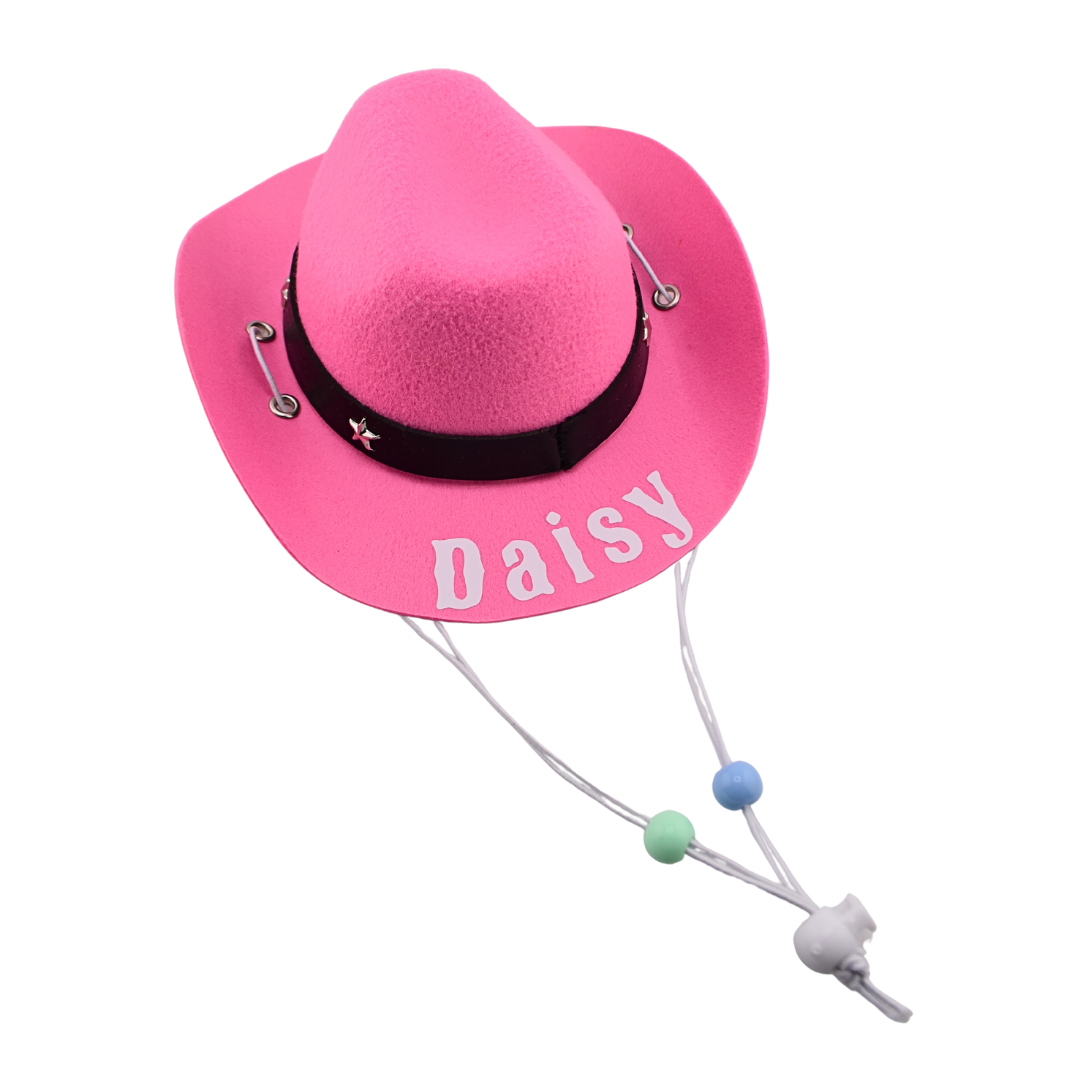 Introducing the Personalized Dog Cowboy Hat – a brand-new product where style meets comfort for your furry friend. This adjustable hat is available in multiple colors and crafted from high-quality materials, ensuring a secure and comfortable fit for every adventure. Plus everyone will know your stylish pups name! Make every walk a runway with our Cowboy Hats!