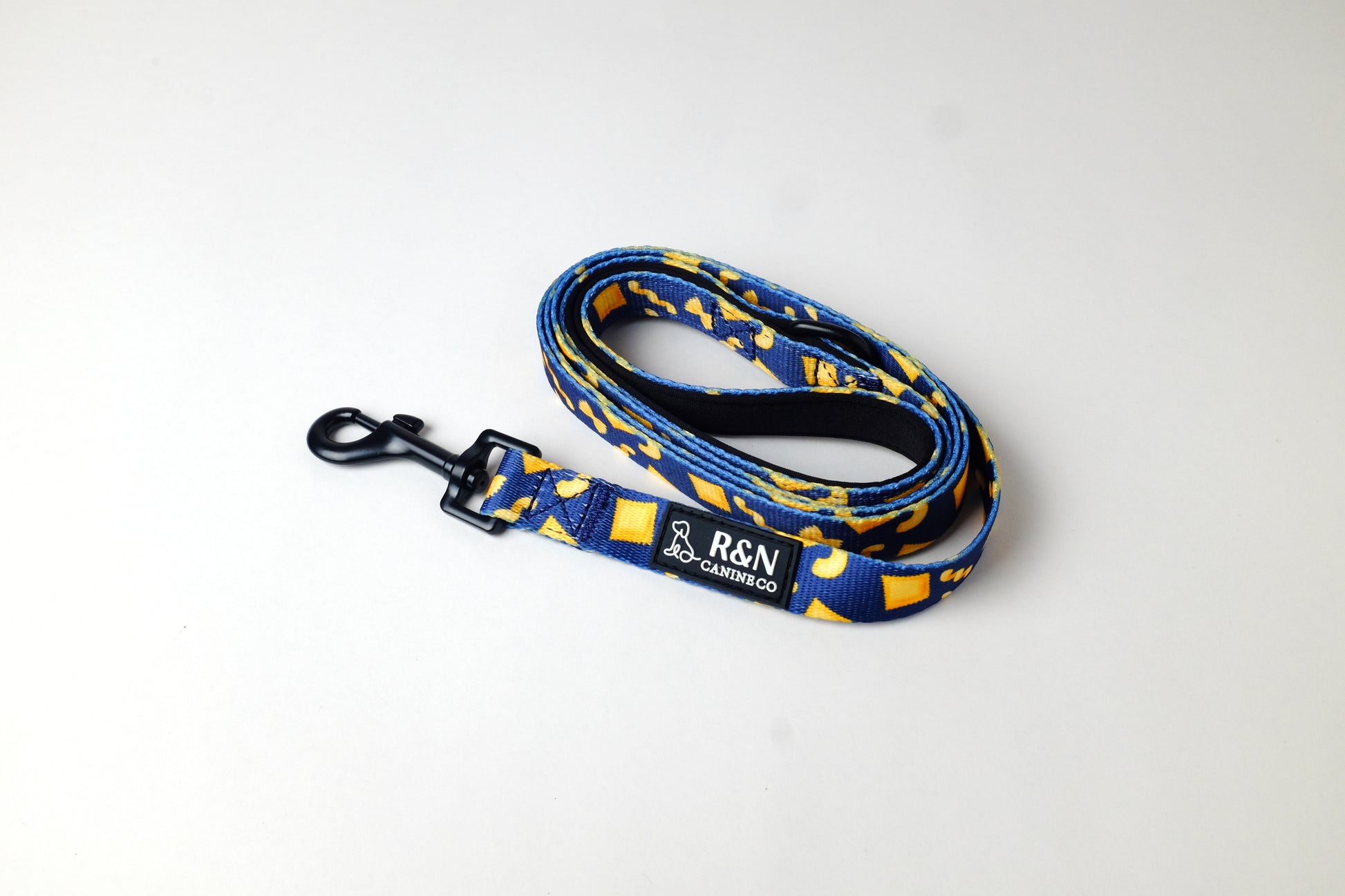 Introducing the Pasta Paws Dog Leash - a stylish and durable accessory for pasta-loving fans! With an adorable pasta print, it's sure to impress during walks. Made of sturdy materials, it withstands everyday use especially with the padded handle, and the heavy-duty D-ring easily clips on accessories. Available in two sizes, it securely attaches to your dog's collar or harness for safety. Get one today and let your pup show off their pasta love while staying stylish and secure on walks!